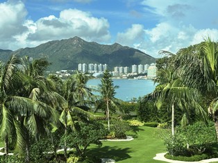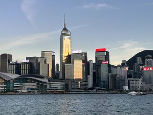 山が海に迫るホンコンの街並み